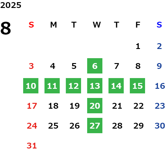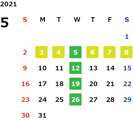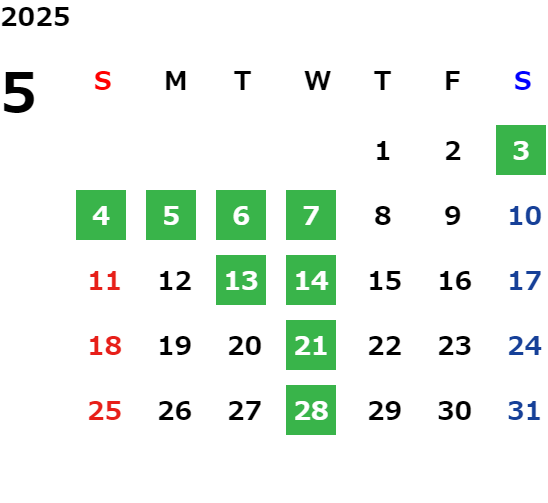 営業日カレンダー