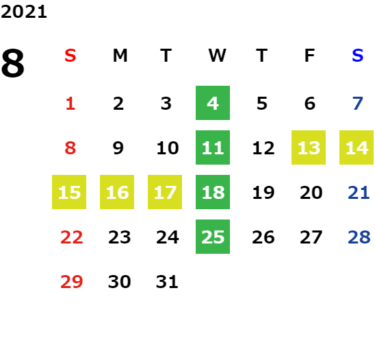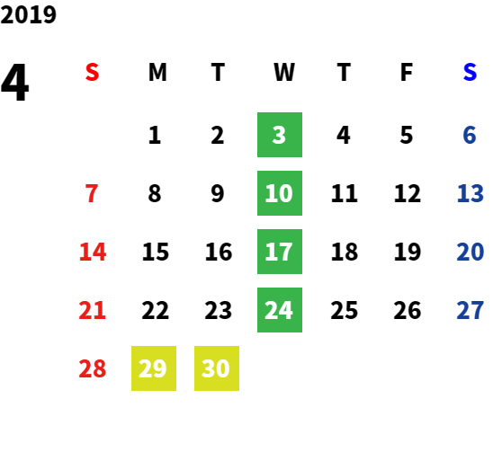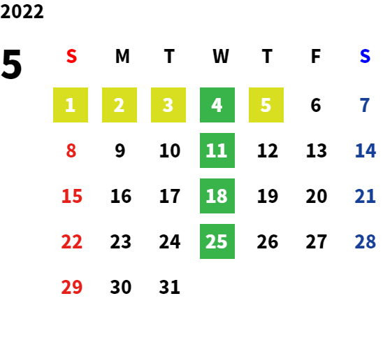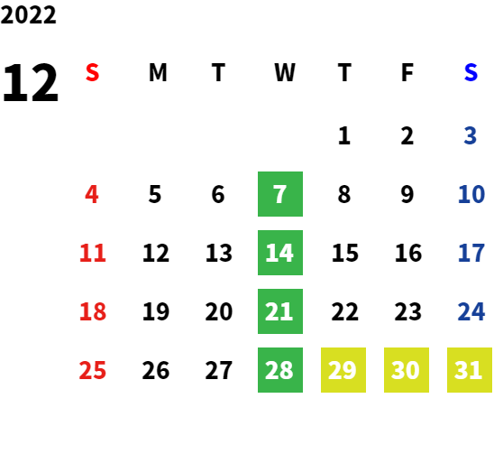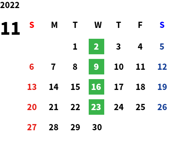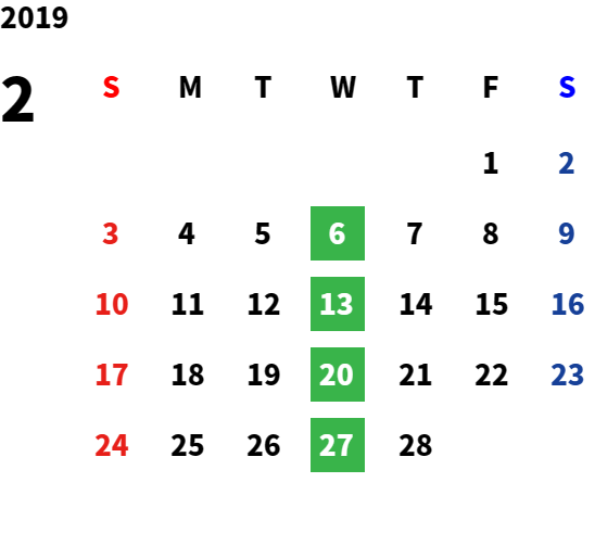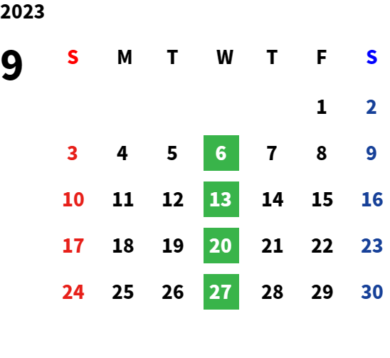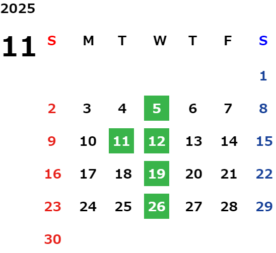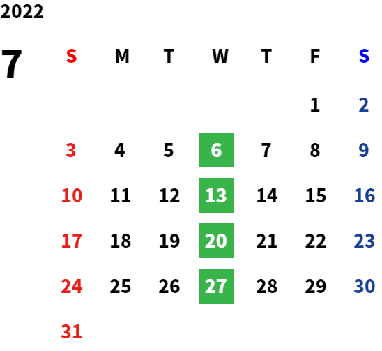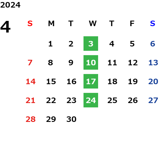 毎週水曜日・第2火曜日